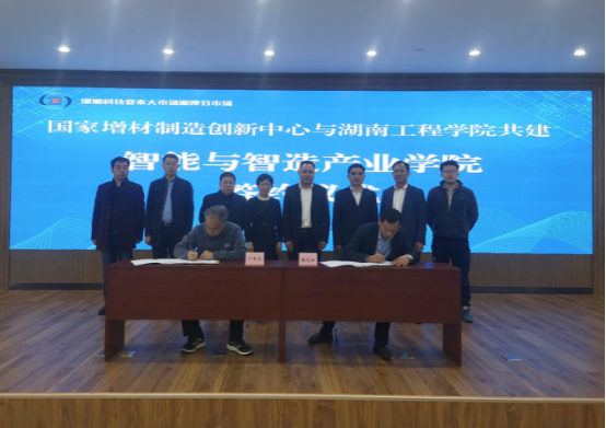 HIE has actively implemented the specific measures on the project of "Rejuvenating the University through Science and Technology" put forward in the Fourth Party Congress, strengthening the collaboration with the national scientific research platform and achieving a breakthrough in the construction of national scientific research platform. According to the agreement, HIE will assist NIIAM to carry out the transformation of additive manufacturing technology achievements in Xiangtan, and NIIAM will create conditions to absorb teachers and graduate students of HIE for special training and further study, so as to cultivate high-level talents in the field of additive manufacturing for HIE.