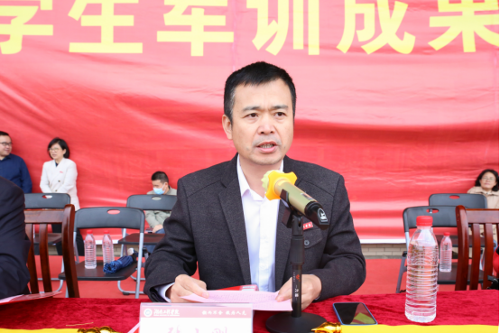 On October 5th, the meeting on the military training achievements of freshmen was held in the track-and-field venue of the main campus. Luo Yiping and Zhang Xiaogang, members of the HIE Party Committee and vice presidents of HIE, attended the meeting. The heads of relevant departments of the school, presidents of various colleges, secretaries and deputy secretaries of grass-roots party committees, all instructors of military training, head teachers and counselors of freshmen, and freshmen of 2022 enrollment also presented the meeting. The meeting was presided over by Luo Yiping.