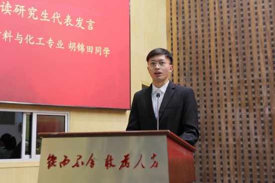 Hu Jintian, representatives of on-campus postgraduates, delivered a speech