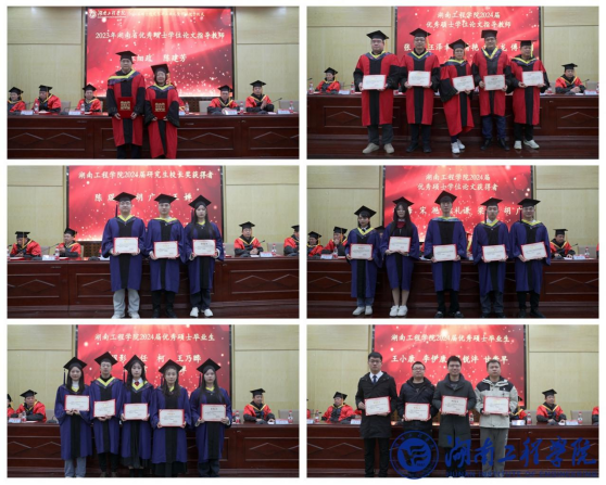The ceremony commended Hunan Province's outstanding master's thesis instructors, the school's outstanding master's thesis winners and their instructors, the president's award winners, and the school's outstanding master's graduates in 2024. Yi Bing read out the decision on awarding professional master's degrees, and completed the tassel-turning ceremony and awarded degree certificates.