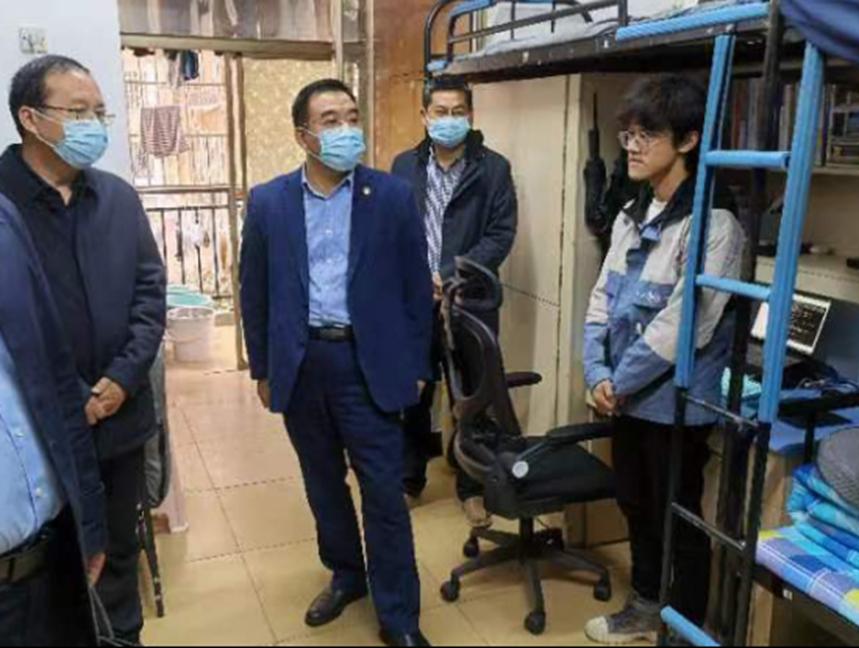 Chen Yuetang, Party Secretary of the CPC Committee of HNIE, checked dorm hygiene and stressed the importance of electrical safety and cultural atmosphere. Chen encouraged students to cherish time, improve proficiency and horn skills in pursuit of goals for life and for different phases. In addition, he asked them to abide by the rules against the virus and strive for self-management and self-discipline under normalized epidemic prevention and control so that through joint efforts of students and teachers, there is no epidemic on campus.