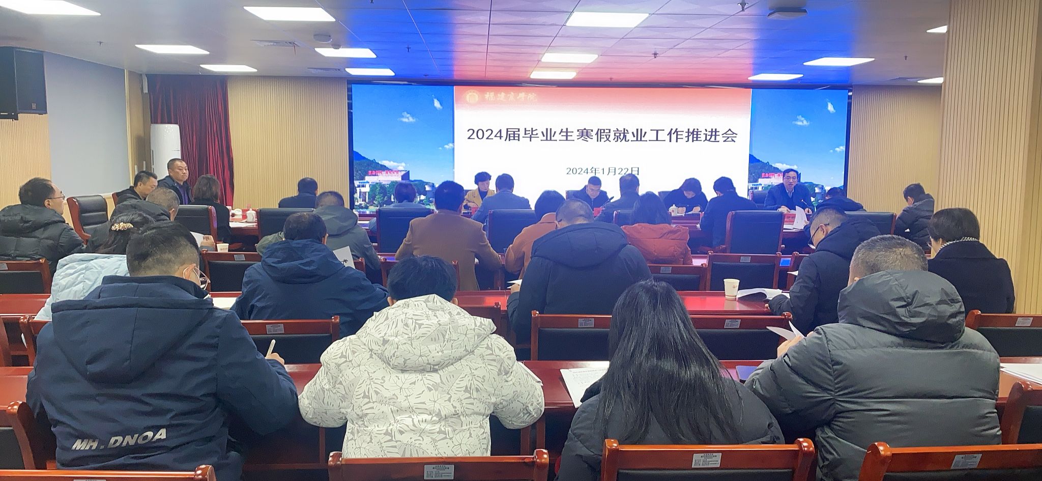 1月22日上午,开云官网在连江校区第一会议室召开2024届毕业生寒假就业工作推进会。校党委书记吴访益、校长程灵、副校长林文艺出席会议,有关职能部门负责人、二级学院党政负责人和就业工作联系人参加会议。会议由校党委副书记蒲文庆主持。