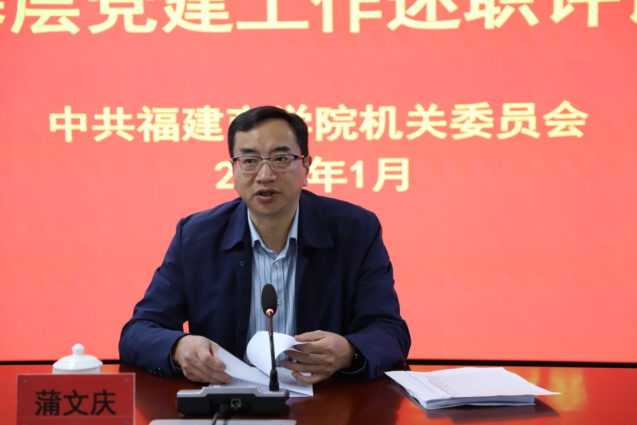 蒲文庆强调,要认真学习贯彻习近平总书记关党的建设的重要思想,开展基层党支部书记抓党建工作述职评议考核是落实党建工作责任制的重要抓手,也是对党支部书记履行抓党建工作第一责任人责任的一次“政治体检”和“集中会诊”。机关各党支部要以述职评议为契机,围绕党支部“七个有力”进一步狠抓党建责任落实。一要突出思想建党、理论强党,坚持不懈用习近平新时代中国特色社会主义思想凝心铸魂。要坚持把学习贯彻习近平新时代中国特色社会主义思想作为机关党委会议第一议题及机关党委理论中心组、支部“三会一课”学习的首要任务,切实筑牢忠诚拥护“两个确立”、坚决做到“两个维护”的思想根基。二要着眼建强堡垒、巩固根基,不断彰显党的政治优势和组织优势。扎实推进机关党支部标准化规范化建设,全过程严把党员发展关口、全覆盖加强党员教育管理、全方位激励党员发挥作用,把机关党支部建设成为有效实现党的领导的坚强战斗堡垒。三要聚焦围绕中心、服务大局,着力以高质量党建引领保障学校事业高质量发展。要不断增强基层党组织政治功能和组织功能,激励机关党员干部在推动学校高质量发展中挑重担、当先锋、打头阵,切实把党的政治优势、组织优势转化为发展优势。要不断推进机关党建工作创新发展,探索打造更多富有福商特色的党建品牌和样板支部,确保机关“第一方阵”永远走在前、做表率。