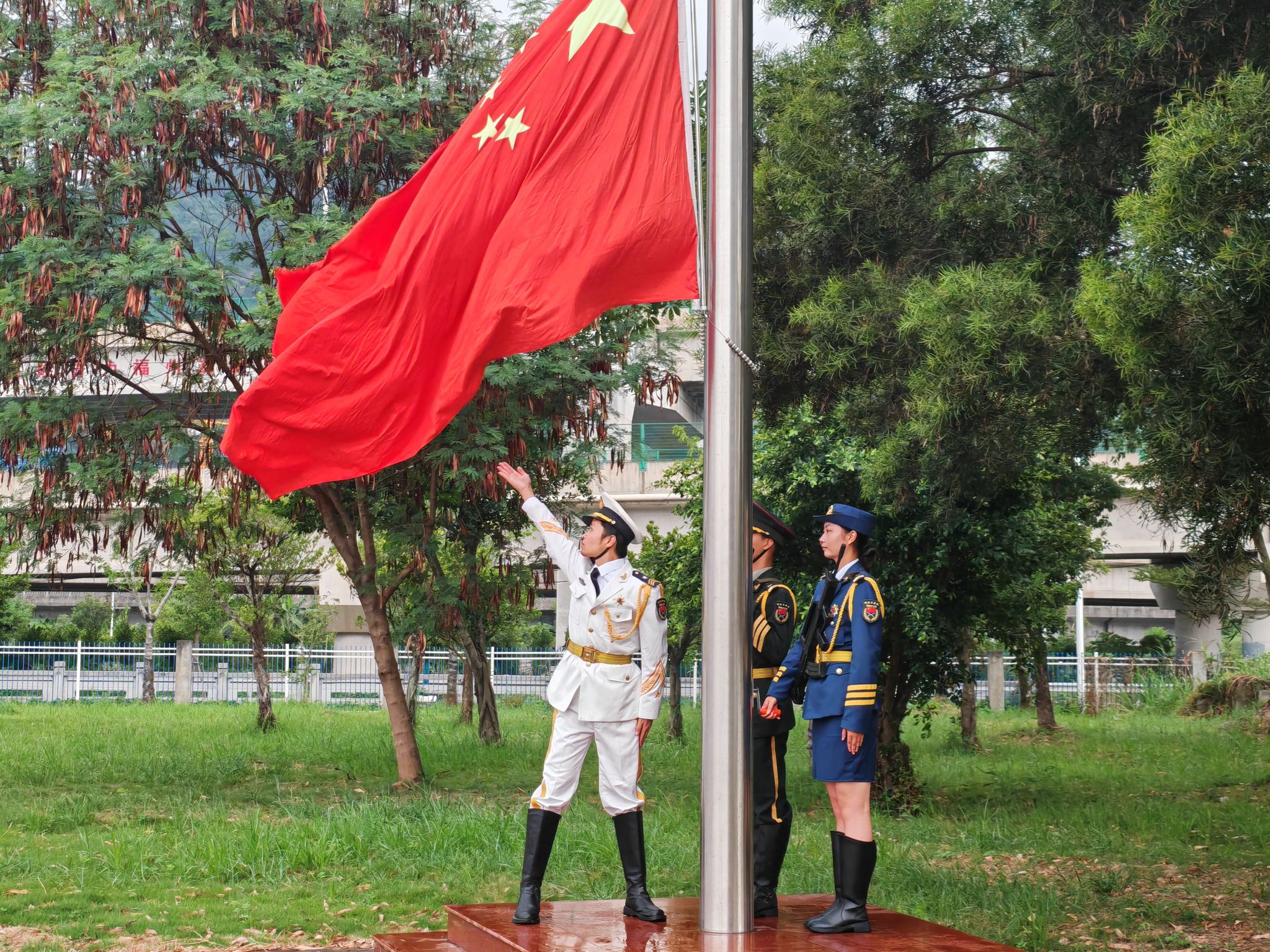 10月1日上午,开云官网在连江、马尾、鼓楼三个校区同时举行国庆升旗仪式。校党委书记吴访益,副校长蒲文庆、萧罡,有关部门负责人、二级学院党政负责人、辅导员及学生代表等300余人参加升旗仪式。