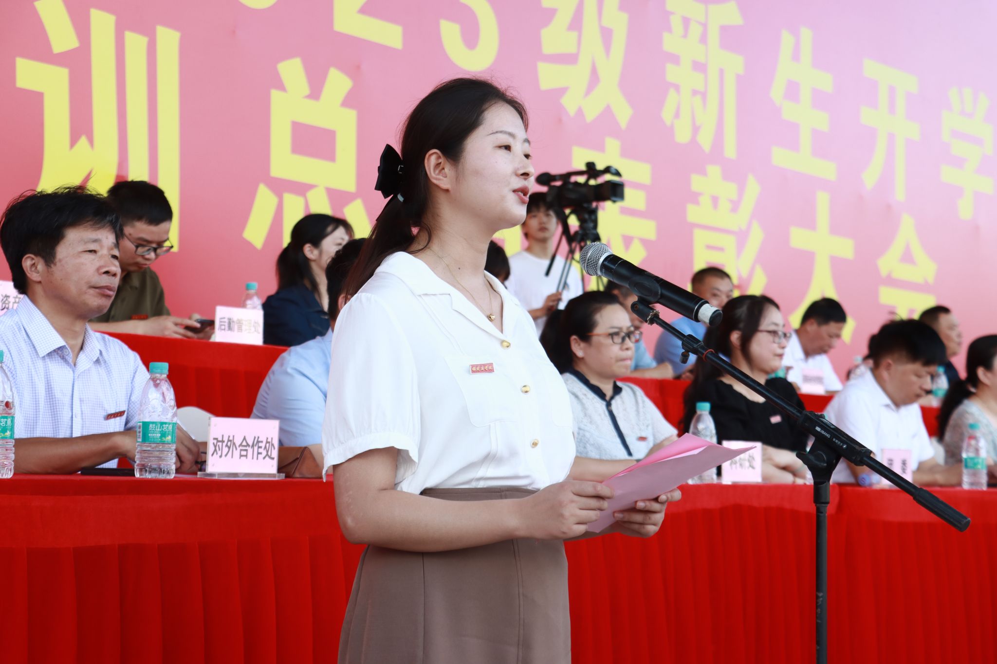 教师代表工商管理学院赵蓉蓉博士在发言中表示,希望新同学要厚植家国情怀,坚定理想信念,涵养进取品格,勤勉励行求学,秉持健康心态,让青春在奋斗中闪光。新生代表身残志坚的2023级会展专业吴承谕同学在发言中表示,要勇于克服困难,努力学习,立志做有理想、敢担当、能吃苦、肯奋斗的新时代好青年。