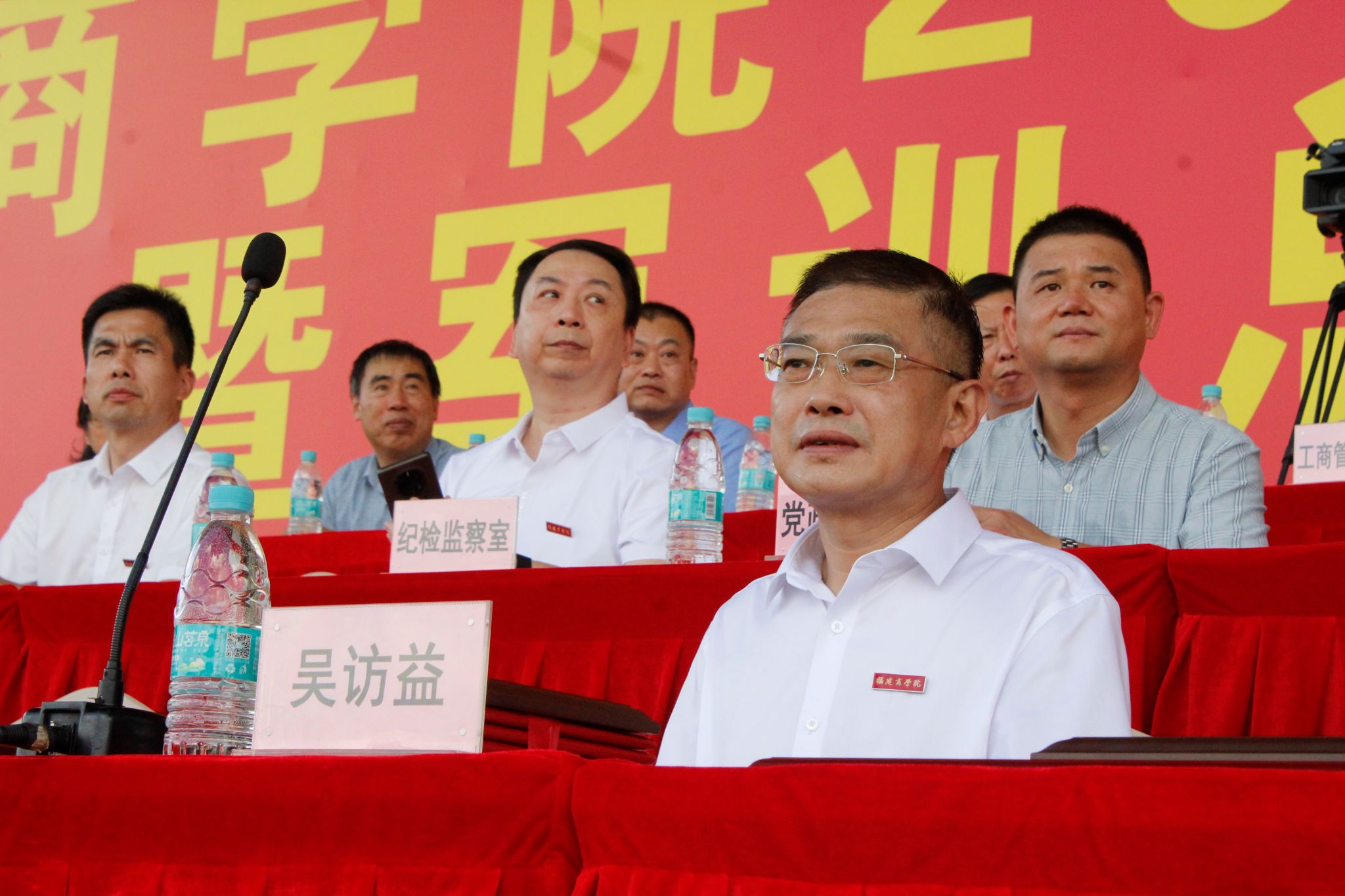 校党委书记吴访益宣布军训汇演开始