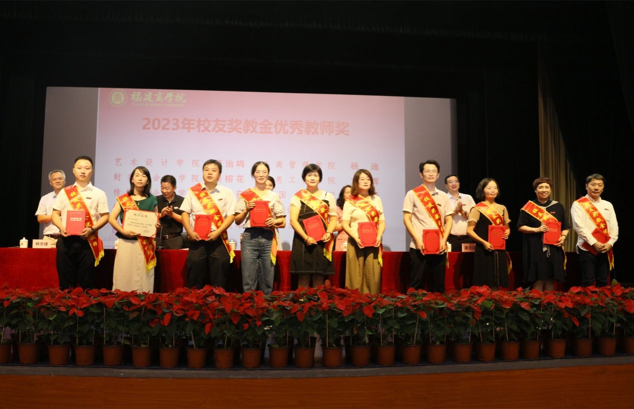 大会对荣获“福建省优秀教师”称号的梁小红、连捷,获得省级以上教育教学成果奖的李冰、陈柏良、陈颖,获得2023年度校友奖教金优秀教师奖、优秀团队奖、优秀青年教师奖的个人和团队进行了表彰奖励,并为新晋高级职称人员颁发聘书。程灵为慷慨捐资的校友代表陈英、梁赞云、陈舟、林辉、张振敏、林毅鹏、陈祥庚、江银洲等颁发了捐赠证书。