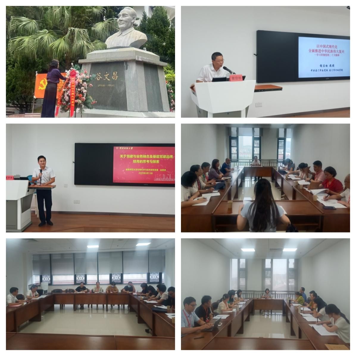 培训班以专题讲座、集中研讨、现场教学等为主要形式。在专题教学中,厦门市委党校教授谢启标、闽南师范大学生物科学与技术学院党委书记连恩德分别围绕学习贯彻党的二十大精神、党建与业务融合及基层党建品牌培育等为参训学员作专题辅导报告。在分组研讨环节,大家围绕“如何成为一名优秀的‘双带头人’教师党支部书记、组织员,如何做好党员教育培训工作,如何打造二级学院党建品牌”进行研讨。