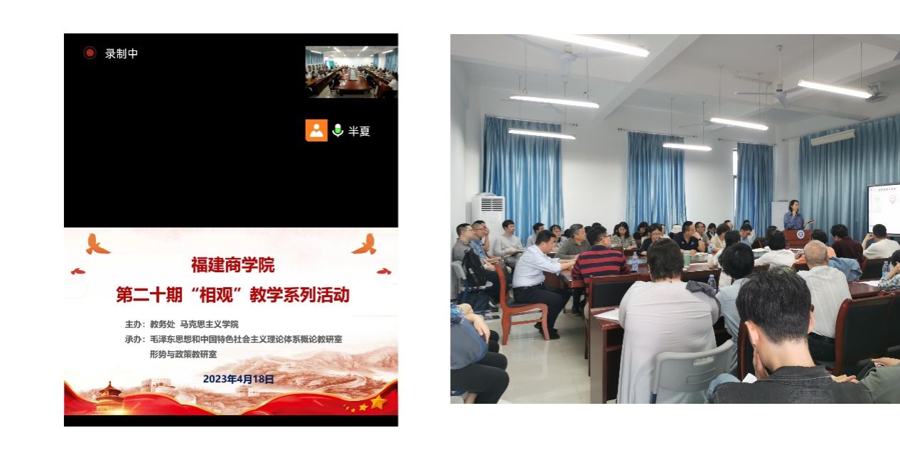 研讨会上,马克思主义学院院长林萍分享了学院的教研特色,强调以制度建设和关键少数为两个管理抓手,通过绩效考核、集体备课、示范课、听课磨课、读书沙龙、成果公示、荣休奖等方式,激活教师发展动力;马克思主义学院副院长张发友作了读书分享,给大家推荐了《中共党史重大问题研究》一书;马克思主义学院陈翠、董立刚两位教师分别作了“以斗争促安全,助推经济高质量发展”“共同富裕--中国式现代化的鲜明特色之一”的教学片段展示。武夷学院陈文教授在线上作了评论,分享了自己在同样主题上的备课经验和注意要点,特别强调思政课备课要结合党的理论和政策,要以学生为中心、要以问题为导向。