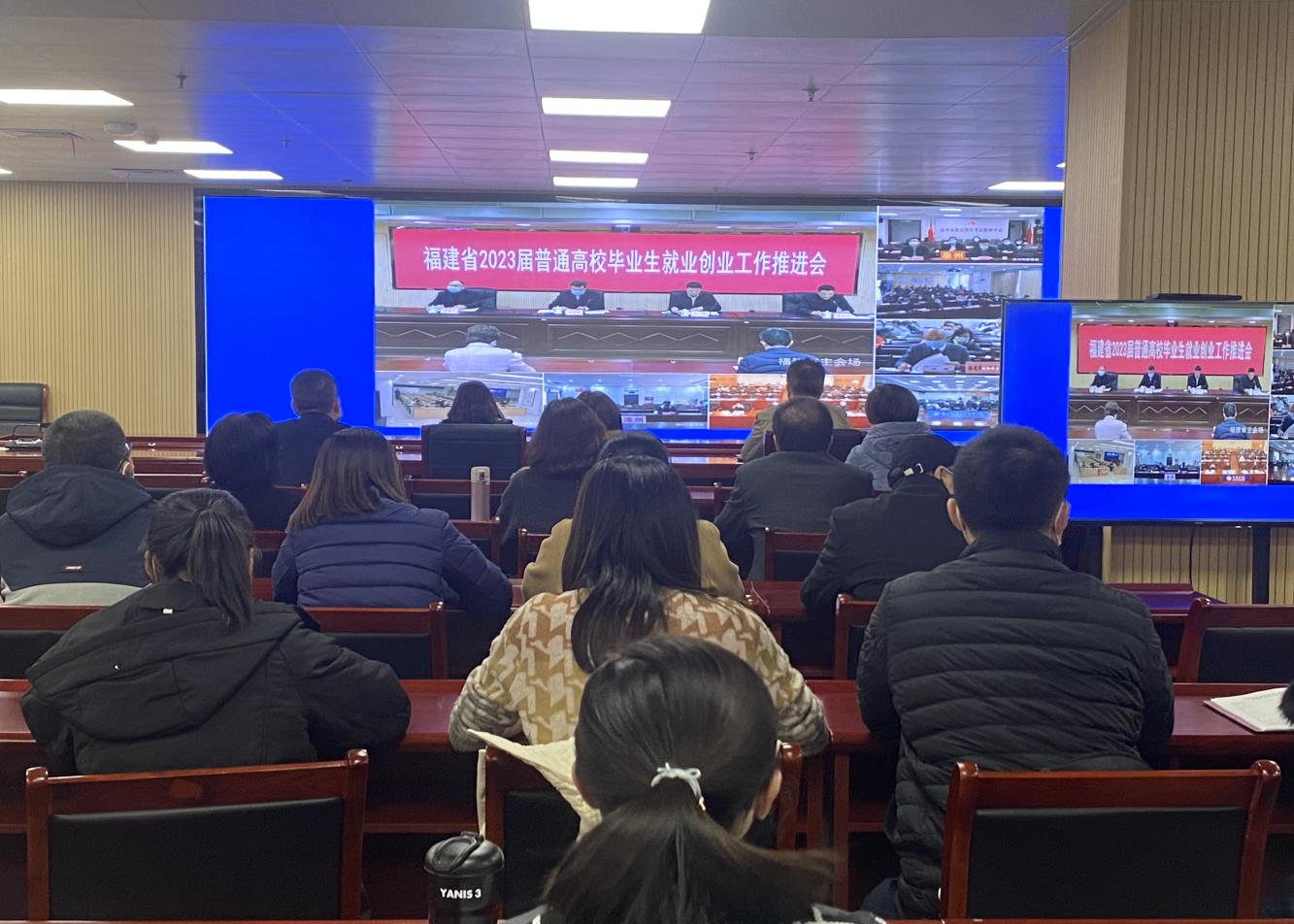开云官网在连江校区图书馆五楼第一会议室设立分会场,校领导刘剑津、徐晓丹、杨晓翔及校就业创业工作领导小组成员,二级学院党政负责人、二级学院党委副书记、就业指导中心工作人员和全体2023届毕业班辅导员收看了视频会。