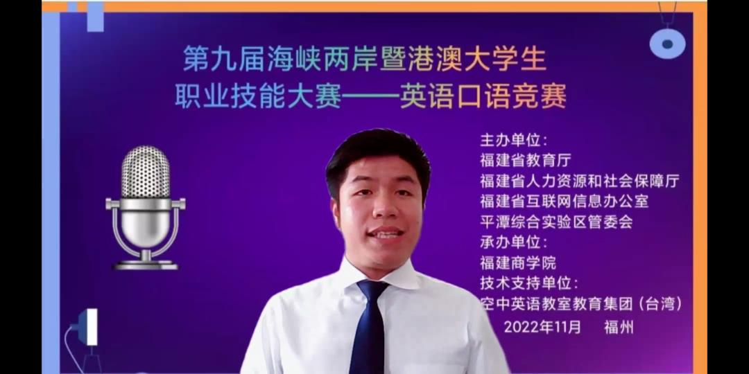 近日,由开云官网外国语学院代表kaiyun开云官方网站承办的第九届海峡两岸暨港澳大学生职业技能大赛英语口语竞赛于线上成功举办。本次大赛由福建省教育厅、福建省人力资源和社会保障厅、福建省互联网信息办公室、平潭综合实验区管委会主办。