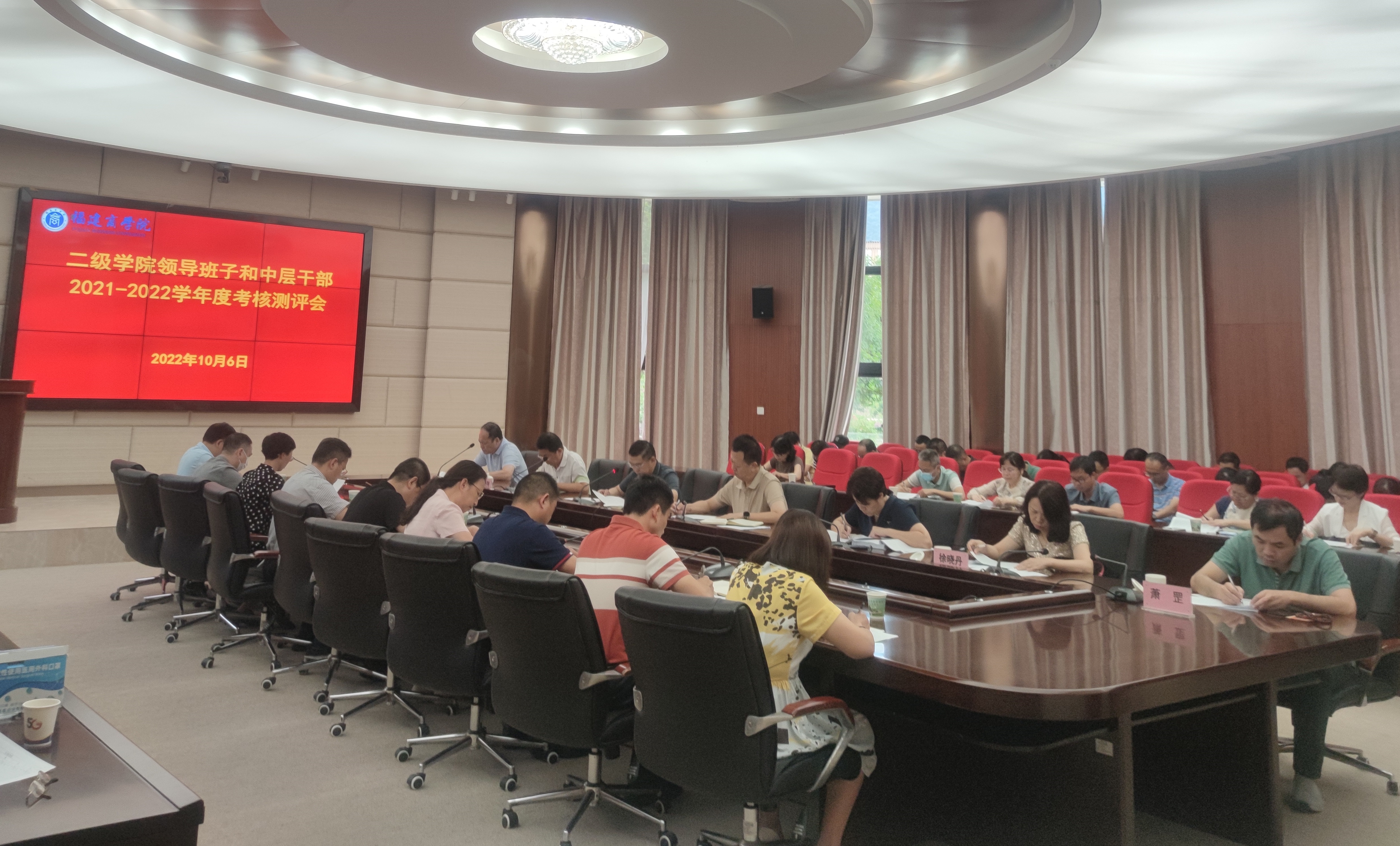 10月6日下午,开云官网召开2021-2022学年度二级学院领导班子和中层干部考核测评会。在家校领导刘剑津、程灵、吴访益、徐晓丹、杨晓翔、萧罡、周训胜和全体中层干部参加会议。会议由校党委副书记吴访益主持。