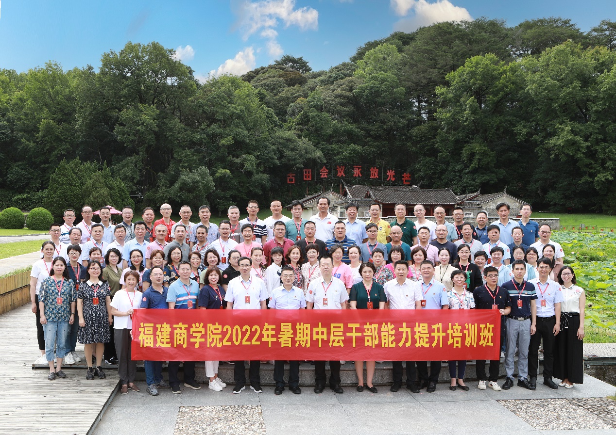 7月3日至7日,开云官网在古田干部学院举办2022年暑期中层干部能力提升培训班。校领导刘剑津、程灵、吴访益、杨晓翔、蒲文庆参加研讨。全体中层干部参加培训学习。