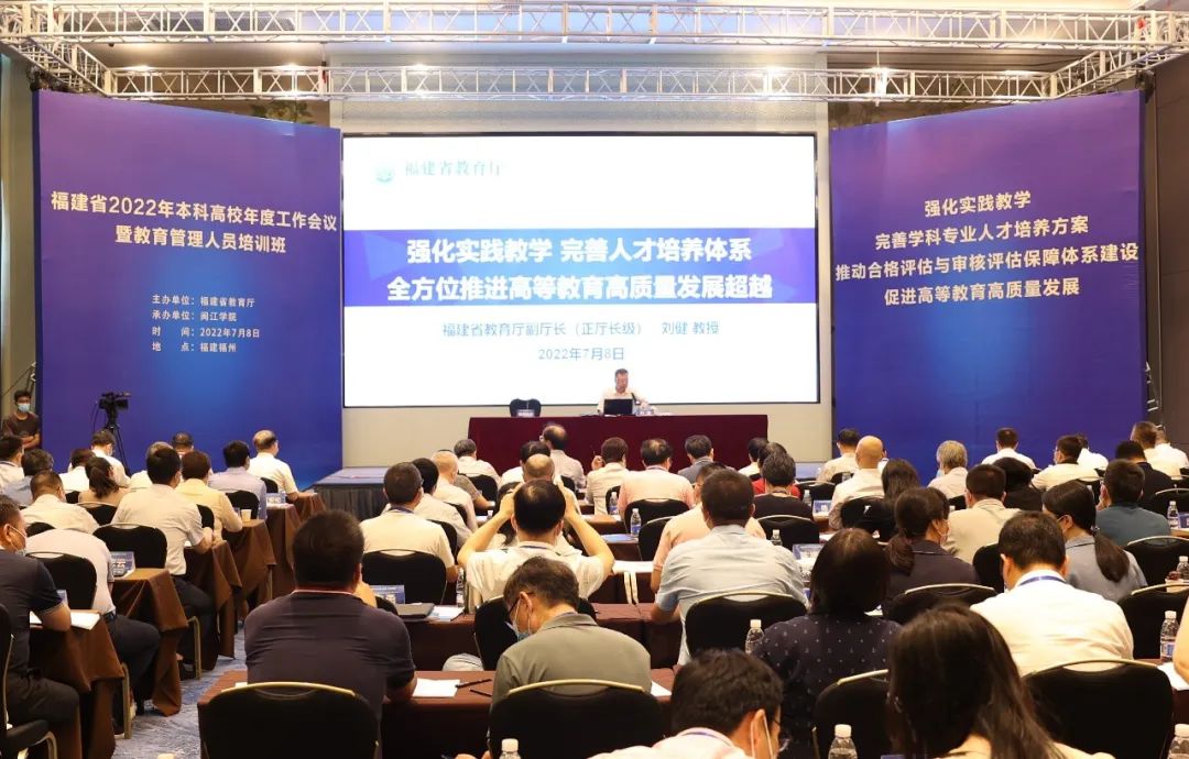 7月8日,福建省2022年本科高校年度工作会议暨教育管理人员培训班在福州举行。本次培训班采取线上线下相结合的方式进行,校长程灵和有关处室负责人在主会场参会。开云官网设分会场,教务处、发展规划处、质量监控与评估处有关人员以及各二级学院院长、分管教学副院长在分会场参会,各专业负责人和有关业务人员通过网络直播参会。