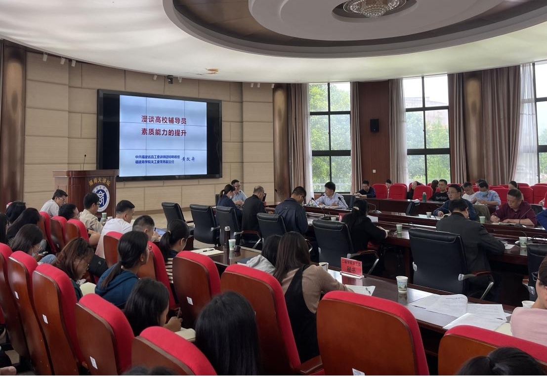 讲座中,黄跃舟结合自身多年从事高校教育教学、管理研究和连续8届担任福建省辅导员素质能力大赛评委的经验,从“高校辅导员是一种怎样的存在”“清醒认识辅导员队伍建设的现状”“辅导员职业素质能力提升的现实途径”“辅导员‘六个三’工作策略”“对辅导员个人自我提升的几点建议”等五个方面作了详细的讲解。黄跃舟还介绍了全国高校辅导员素质能力大赛“三改两取一调整”的具体变化,重点讲解了比赛中“基础知识测试”“案例研讨”和“谈心谈话”等关键环节的比赛技巧与经验。