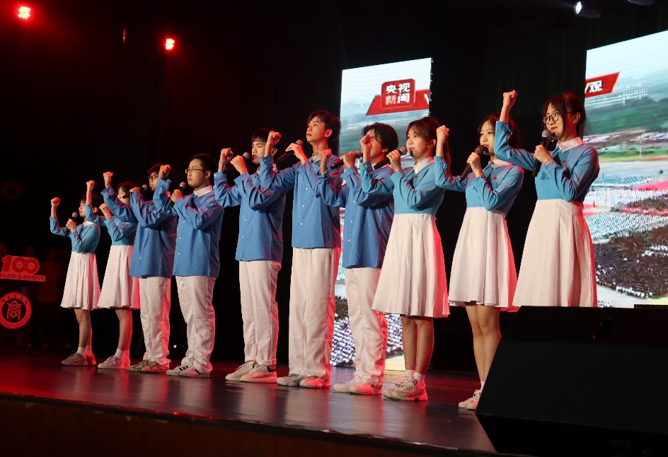表彰大会在诵读《觉醒年代之青春中国》中拉开帷幕。校长程灵宣读2021年共青团工作先进集体和个人名单,现场举行了隆重的颁奖仪式。