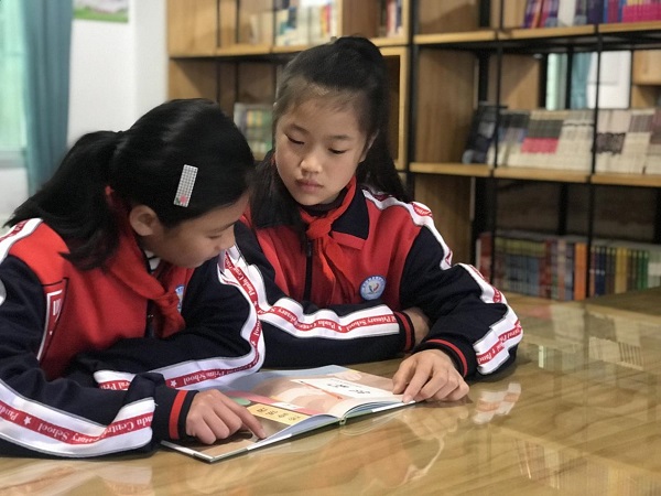 潘渡中心小学学生在阅读《廉政碑轶事》绘本