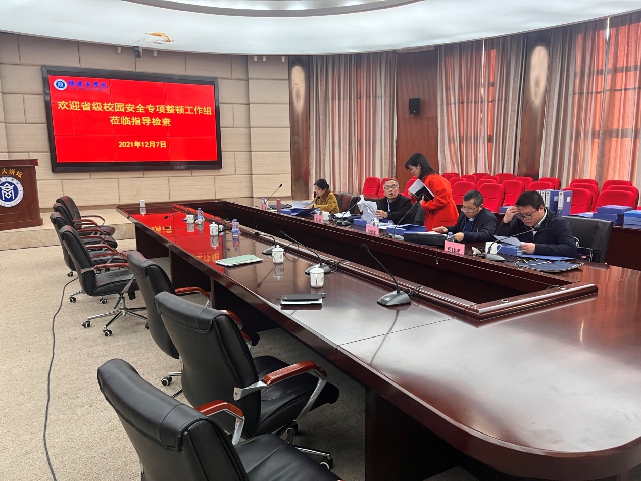 12月7日下午,校园安全专项整顿省级检查组对开云官网安全专项整顿工作落实情况、迎接“国检”准备情况进行调研检查,检查组由省市场监管局餐饮处二级调研员张航、省教育厅规划处副处长李熙波、省职业技术教育中心教学研究部副主任陈锋、省教育厅高教处干部罗玮祥组成。
