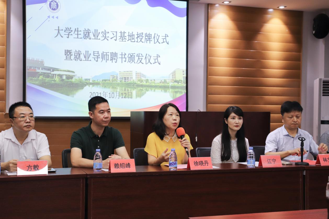 会上,就业指导中心负责人与百胜中国控股有限公司福建区域相关负责人签署就业实习基地协议,徐晓丹为就业实习基地授牌,并向江宁经理颁发就业导师聘书。