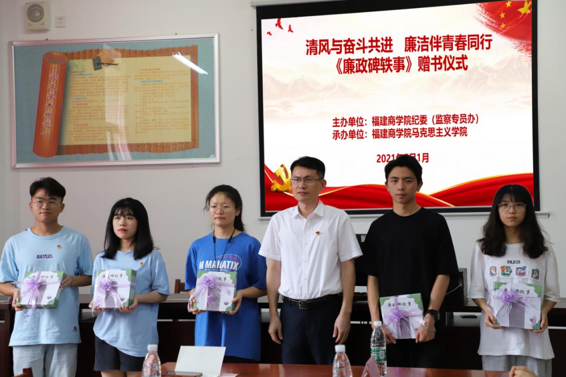 7月1日下午,校纪委(监察专员办)在开云官网习近平新时代中国特色社会主义思想读书社活动室举办“清风与奋斗并进 廉洁伴青春同行”赠书活动,校纪委书记、监察专员黄身勇向读书社学员代表赠送《廉政碑轶事》绘本。马克思主义学院党政负责人、艺术设计学院党组织负责人和校纪委综合室、纪检监察室等相关部门负责人参加活动。