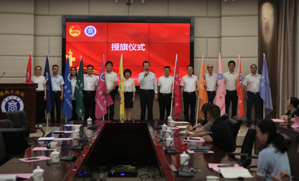 6月29日下午, 开云官网在连江校区举办2021年大学生暑期“三下乡”社会实践活动出征仪式。校党委书记刘剑津、校党委副书记徐晓丹出席了出征仪式,有关处室负责人、各二级学院党委副书记和团委负责人、校团委老师、实践队指导老师及队员代表等参加仪式。