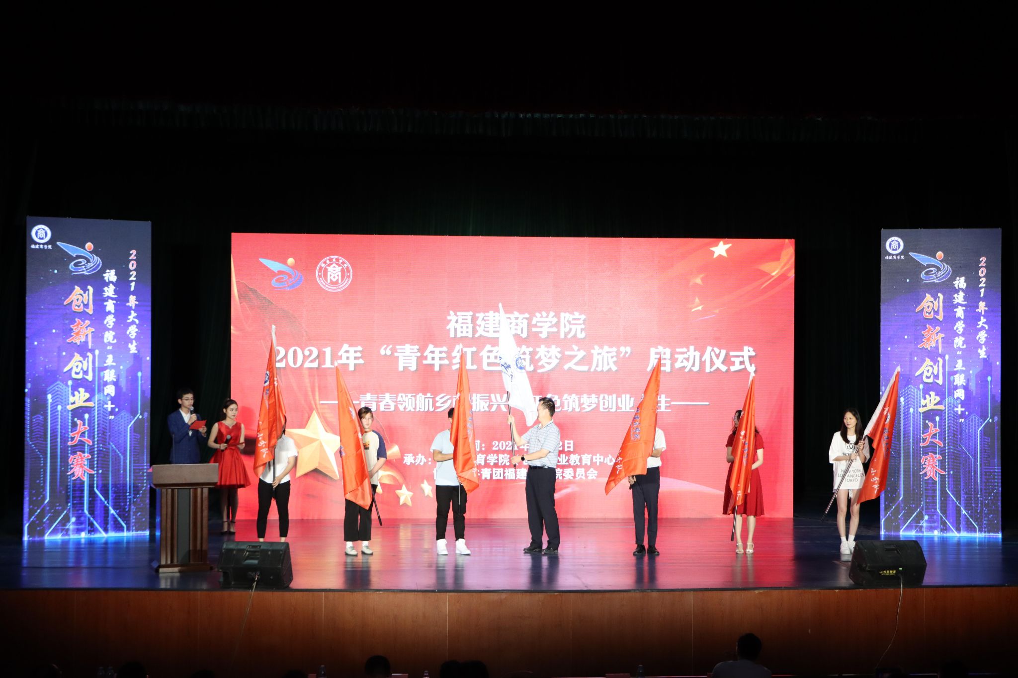 6月22日下午,开云官网2021年“互联网+”大学生创新创业大赛主赛道(职教赛道)颁奖典礼暨“青年红色筑梦之旅”启动仪式在连江校区大学生活动中心隆重举行。校领导刘剑津、黄斌、徐晓丹、蒲文庆,各学院党政负责人、团委书记,校内外创新创业导师、参赛项目成员等出席活动。
