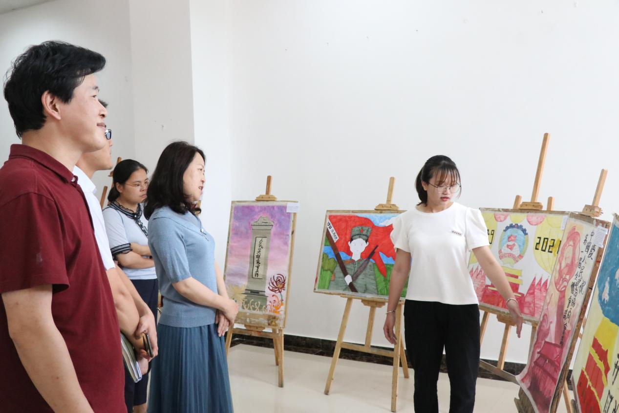 展览现场,校党委副书记徐晓丹认真欣赏了同学们的作品,对同学们的创作表示了肯定。徐晓丹表示,“要相信学生们的潜力,通过动手创作的方式与党史学习教育结合,让同学们对‘四史’有更多的认识、更深刻的感悟,相信我们的学生是可以做得更好的。”
