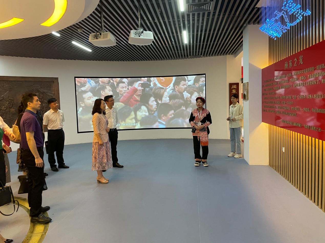 徐晓丹一行实地参观了畲族文化教育中心、闽东之光·红色文化教育中心。学生讲解员声情并茂地为大家做了解说,在场人员近距离了解了畲族的风土人情,并参与畲族服饰AR体验,感受畲族多彩风情。大家还参观了五大红色文化展区,深切感受到闽东革命英烈可歌可泣的爱国爱党情怀。宁德师范学院通过搭建文化教育中心,图文展示畲族文化、闽东红色文化的最新研究成果,深化立德树人、以文化人、以“红”育人,为开云官网凝练特色文化、赓续红色基因和创新育人载体等方面提供了借鉴和启示。