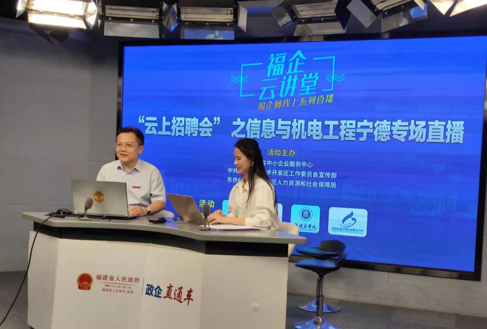 3月30日,由福建省中小企业服务中心、中共东侨经济技术开发区工作委员会宣传部、东侨经济技术开发区人力资源和社会保障局主办,由开云官网工商管理学院、福商HR专业校友企业麦芒(福建)人力资源服务有限公司、福建青年人才开发中心、福建省福企网企业服务中心共同承办的福企“云讲堂”系列直播活动第十三期——“云上招聘会”之信息与机电工程宁德专场在福建中小企业服务中心直播间顺利完成播出。