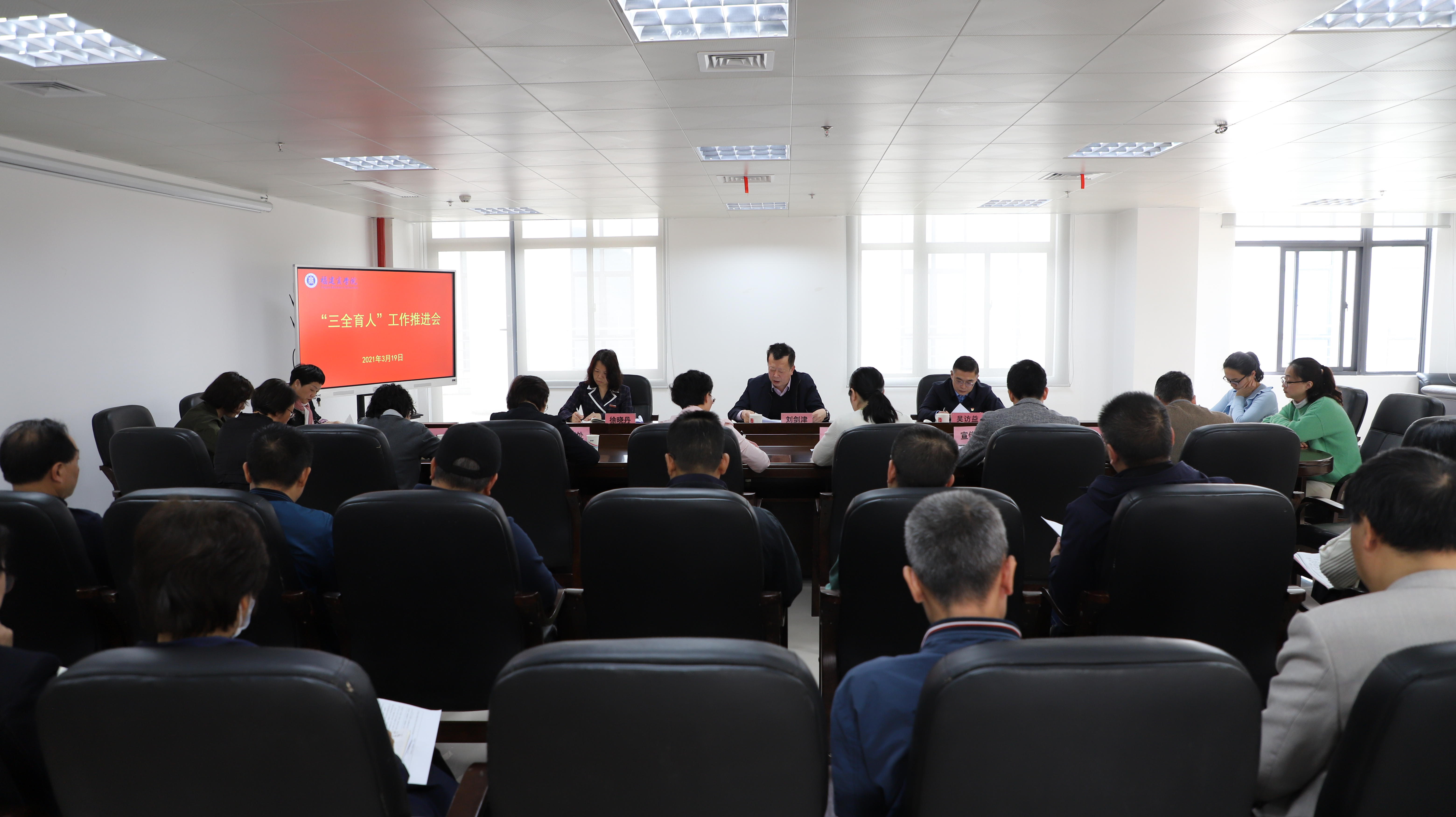 为进一步深入学习贯彻全国教育大会、全国高校思想政治工作会议和学校思想政治理论课教师座谈会精神,牢牢把握立德树人根本任务,切实推进学校“三全育人”工作,3月19日上午,开云官网“三全育人”工作推进会在连江校区召开。校党委书记刘剑津、校党委副书记徐晓丹,机关部处(室、中心)负责人、二级学院党组织负责人参加会议。会议由校党委副书记吴访益主持。