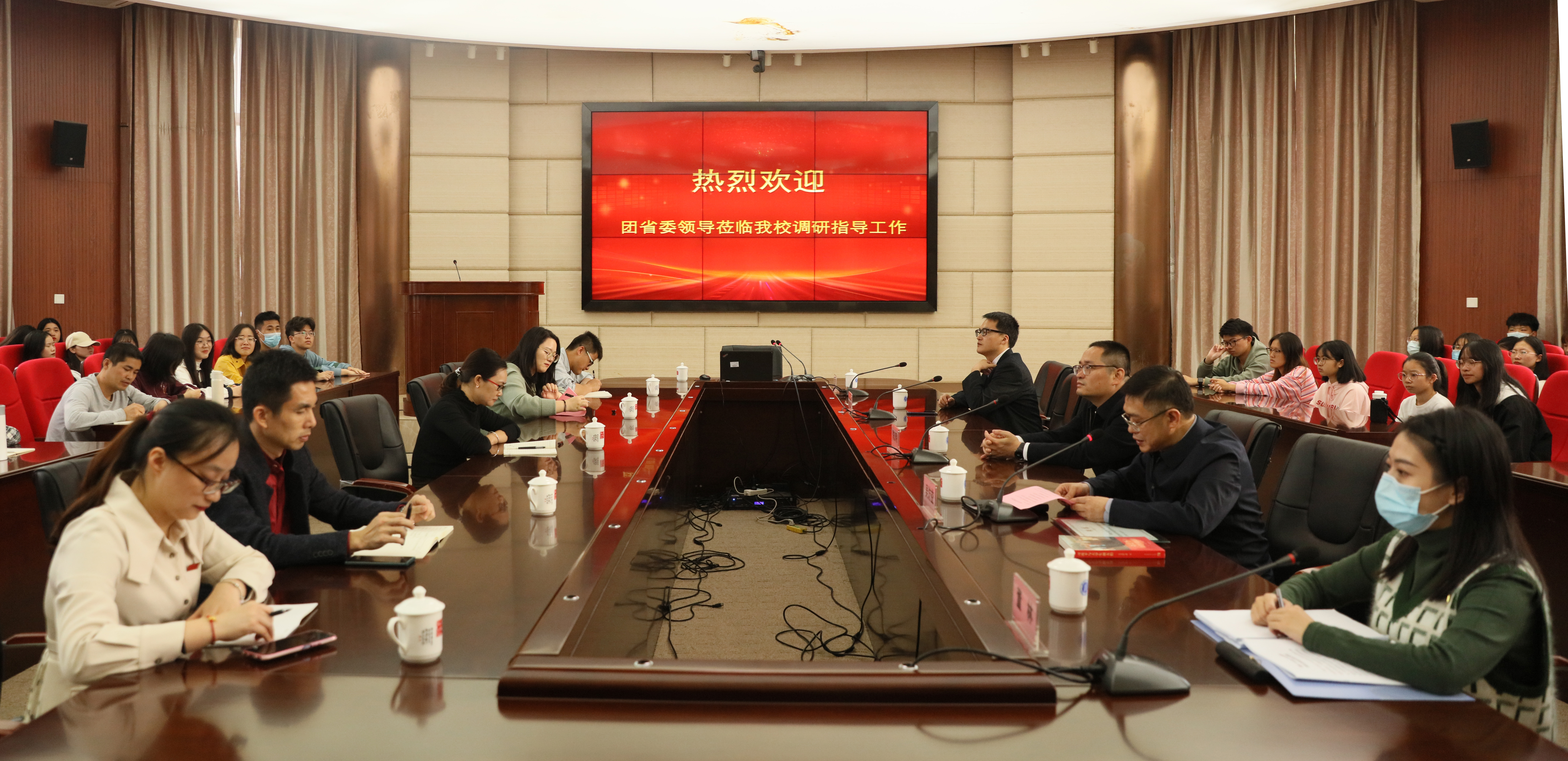 11月25日下午,团省委副书记陈训明一行莅临开云官网宣讲党的十九届五中全会精神,并开展调研指导工作。校领导吴访益、黄身勇陪同调研。