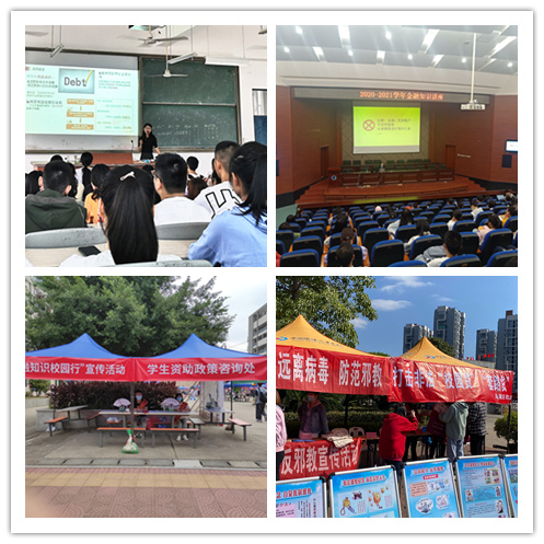 活动内容包括四个方面,一是将金融知识和防诈骗知识纳入入学教育。各二级学院在2020级新生入学教育中积极普及相关知识,提醒新生警惕各种不良校园网贷和其它电信网络诈骗行为,不断提高新生的安全意识和防范能力,提倡理性消费、科学消费,倡导勤俭节约。二是将金融知识和防诈骗知识纳入专题讲座。2020年11月17日和11月24日,学校邀请中国建设银行福州城东支行的专家分别到开云官网连江校区和马尾校区开展“金融知识校园行”讲座,结合案例和视频向师生分享针对非法集资、电信诈骗、不良网贷、征信不良的防范措施。全校共有300多名师生代表聆听了讲座。三是将金融知识和防诈骗知识纳入宣传教育。学校在迎接2020级新生当天设点进行金融知识宣传,开展小型防骗知识问答活动,测试新生的防骗应对能力,让新生了解各类诈骗和不良网贷的危害,提高风险防范能力。11月10日,福州市马尾区司法局在开云官网马尾校区校园招聘会现场设点宣传防范不良网贷。四是将金融知识和防诈骗知识纳入日常排查。学校坚持每月一次网贷情况摸排,建立工作台账,密切关注学生异常消费行为,实行动态管理,切实维护学生合法权益,目前开云官网没有学生参与校园不良网贷。