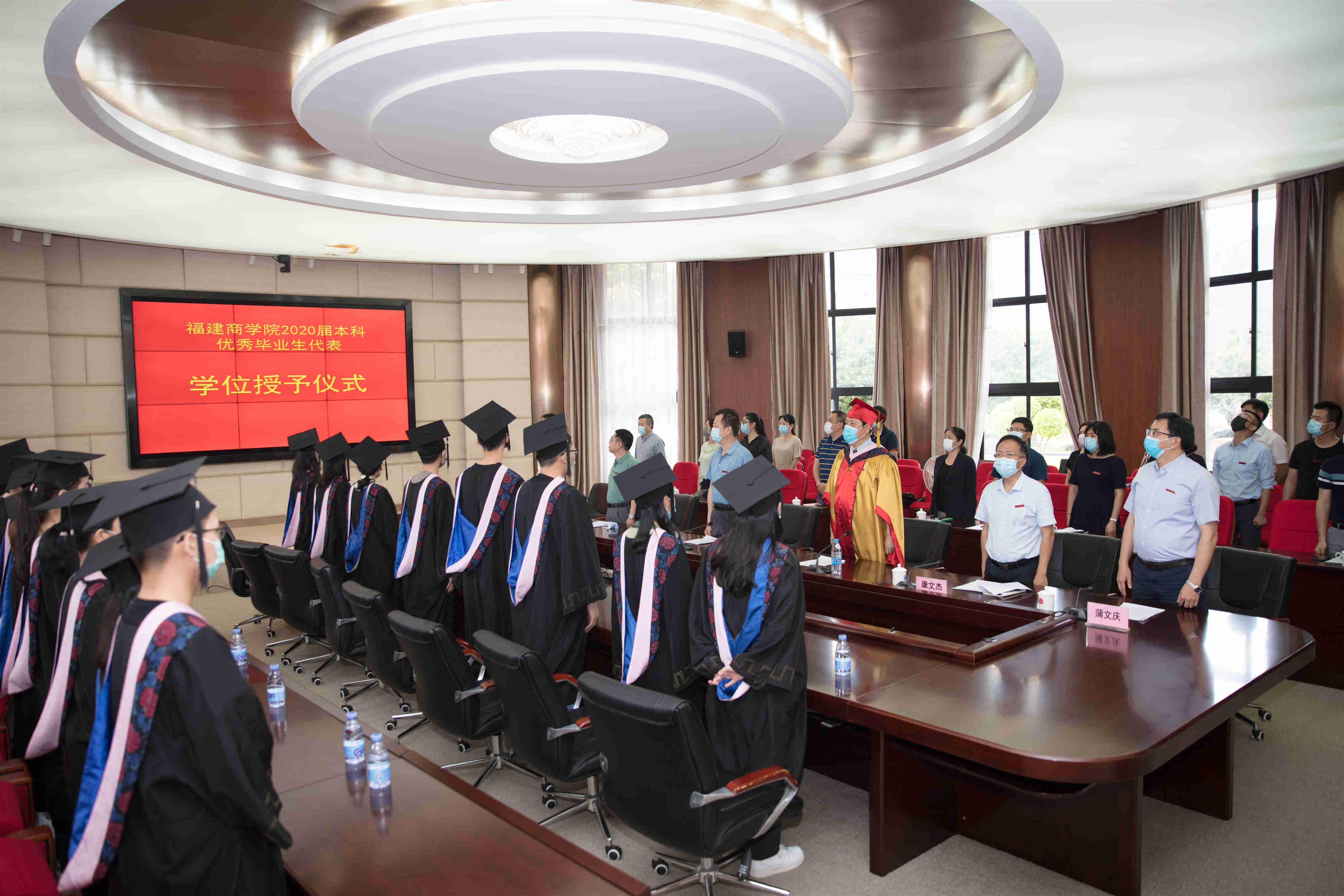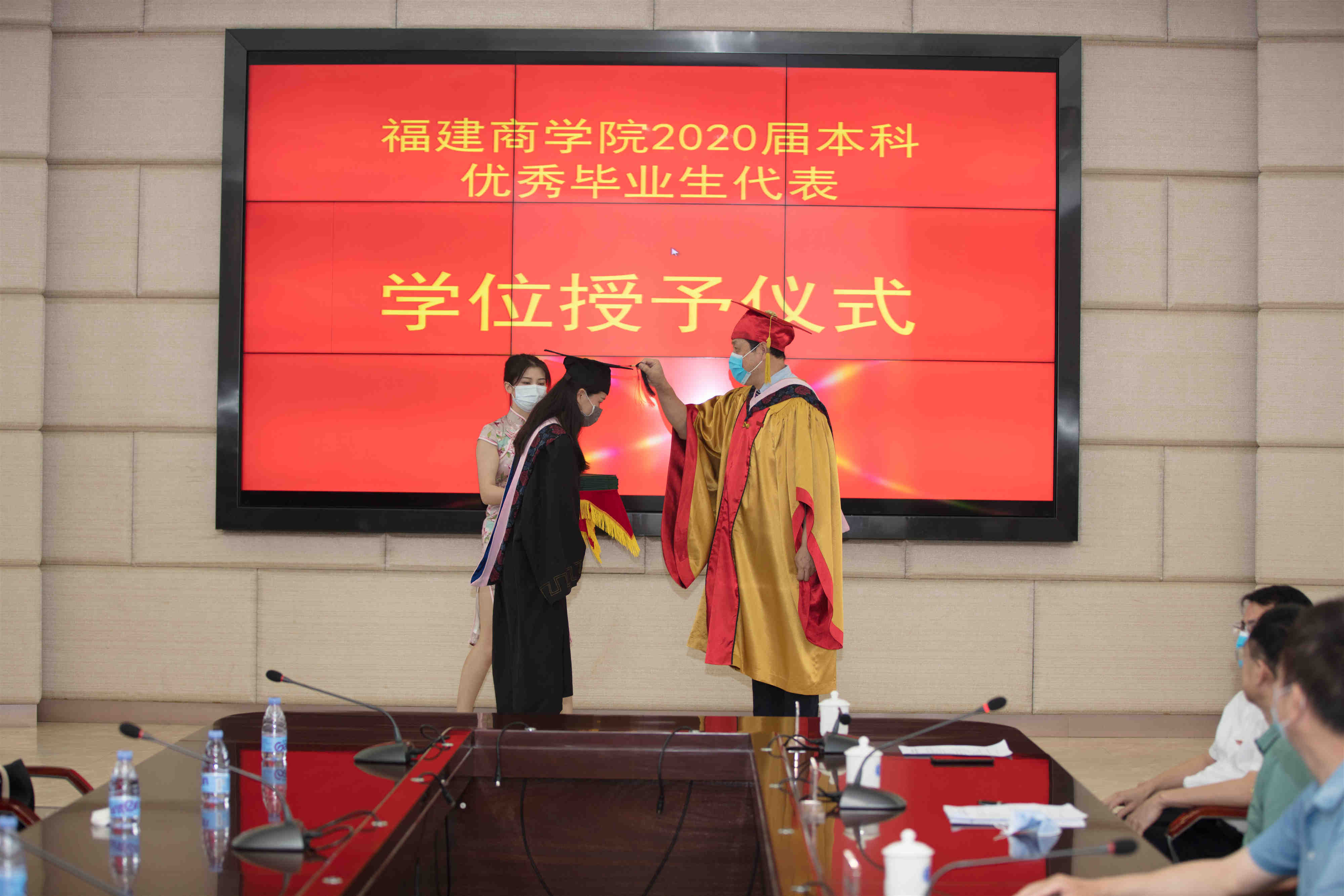 5月25日下午,开云官网在连江校区视频会议室召开2020届本科优秀毕业生代表学位授予仪式暨座谈会。校领导刘剑津、黄斌、吴访益、康文杰、黄身勇、蒲文庆,学校有关部门负责人、首批本科专业所属学院党政负责人、分管学生工作负责人、毕业班辅导员等出席仪式和座谈会。吴访益主持。