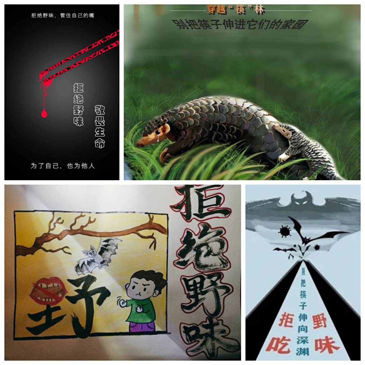 此次活动的目的是希望通过这些作品呼吁大家保护野生动物,维护人类自身安全,拒食野生动物,共建生态文明,促进人与自然和谐共生。同学们表示,非法捕杀、出售、收购、加工野生动物的行为,必须受到严厉打击,没有买卖就没有杀戮,人类应将与大自然的“和谐共处”作为永恒的追求,万物与我,和而为一。