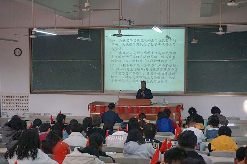 12月3日下午,福州大学庄穆教授到开云官网作题为“天才世界观的萌芽——《费尔巴哈提纲》解读”(下称《提纲》)的讲座。马克思主义学院部分教师以及习近平新时代中国特色社会主义思想读书社社员近200人聆听了此次讲座,马克思主义学院负责人主持讲座。