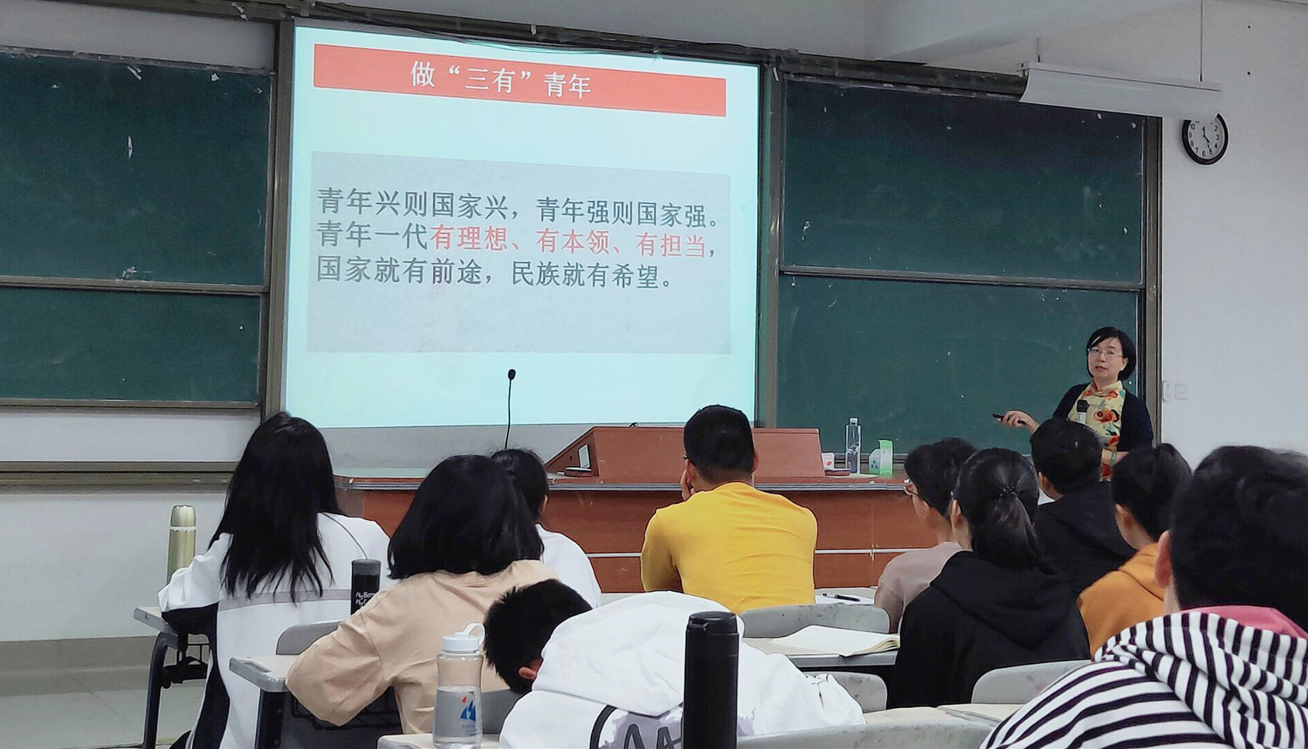 吴贵明教授从“承载伟大时代使命”“扣好人生第一粒扣子”“经历摔打、挫折与考验”三方面系统解读了习近平总书记关于青年工作的重要论述,围绕新时代大学生成长的特点深入分析了大学生确立人生目标、树立正确价值观的路径。吴教授还以习近平总书记的七年知青岁月为例,告诫大学生要正确面对人生的各种挫折,勇往直前,勉励大学生要踏实学习、珍惜身体。