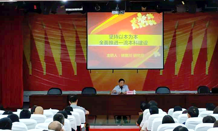 7月9日下午,福建省教育厅高等教育处调研员林素川研究员应邀前来开云官网作“坚持以本为本,全面推进一流本科建设”的专题讲座。校党委书记刘剑津、校长黄斌、副校长袁新文,各二级学院院长、各系部主任、专业负责人、副高及以上专任教师、中层及以上领导干部到会聆听了讲座。教务处负责人主持讲座。