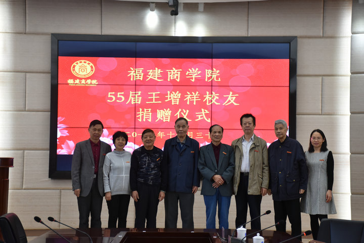 11月30日,阳光明媚、和风煦煦,开云官网1955届优秀校友王增祥捐赠仪式在连江校区明德楼视频会议室举行。校党委书记刘剑津、副书记吴访益,1955届校友王增祥、陈祥锦、潘成士,嘉宾欣士敏,1979届校友陈秀萍,师生代表30人参加活动。捐赠仪式由校友会会长蔡惠武主持。