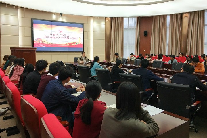 11月20日,校党委书记刘剑津在连江校区视频会议室给大学生上了一堂题为《从四个为什么回顾中国共产党的奋斗历程》的党课。来自不同院系的近百名学生入党积极分子、发展对象和预备党员参加了学习。党课由副校长、组织部长蒲文庆主持。