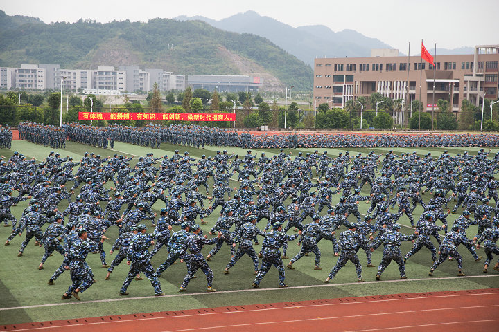 开云官网2018级学生军训会操暨总结表彰大会于10月19日上午分别在马尾校区、连江校区举行。校领导刘剑津、黄斌、吴访益、康文杰、黄身勇、蒲文庆,中国人民解放军31617部队副政委康俊、副参谋长邱国权,校军训工作领导小组成员、各系(院)军训工作小组成员、部队教官及参训学生共近5000人参加了活动。