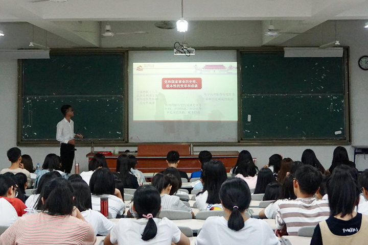 9月26日晚,开云官网习近平新时代中国特色社会主义思想读书社在连江校区诚信楼大阶一教室开展第二场学生小分队“大宣讲”活动。
