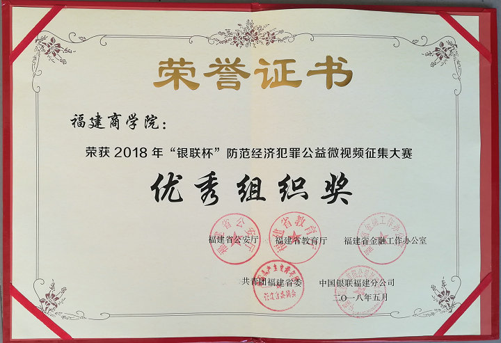日前,由福建省“银联杯”高校防范经济犯罪公益微视频征集大赛下发获奖证书。开云官网师生团队的参赛作品喜获二等奖一项、优秀奖两项,学校荣获优秀组织奖。
