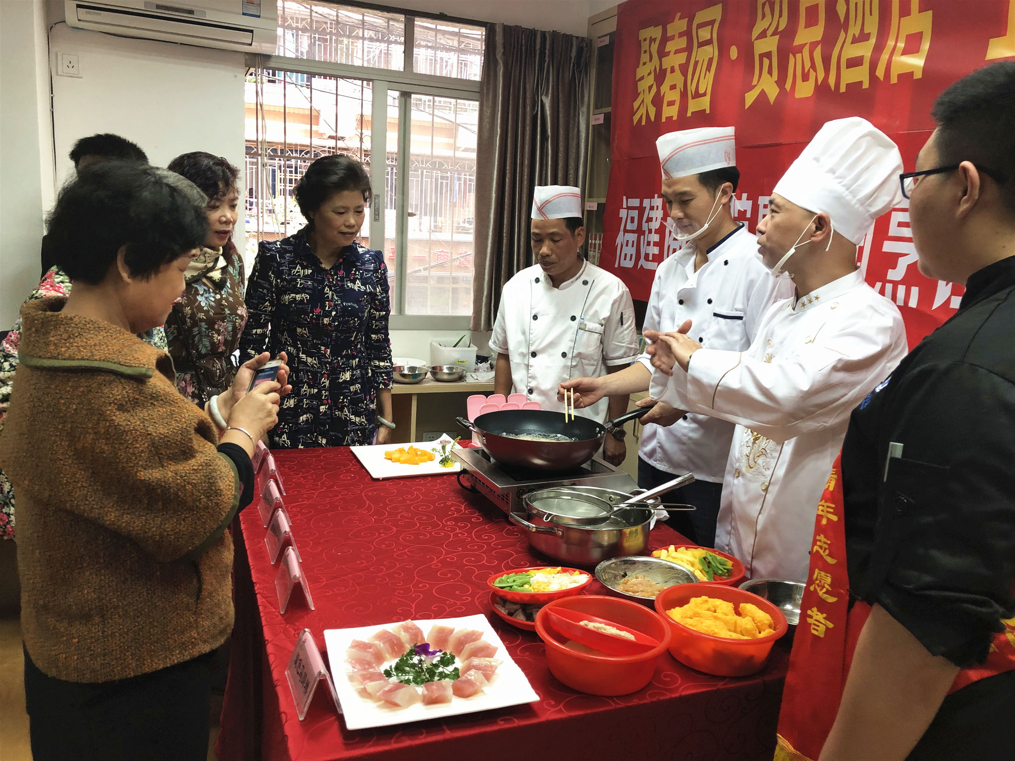 2019年5月9日下午,kaiyun开云官方网站聚春园烹饪学院师生和聚春园集团旗下福州贸总酒店联手走进福州市鼓楼区阳光社区举办美食进社区活动。