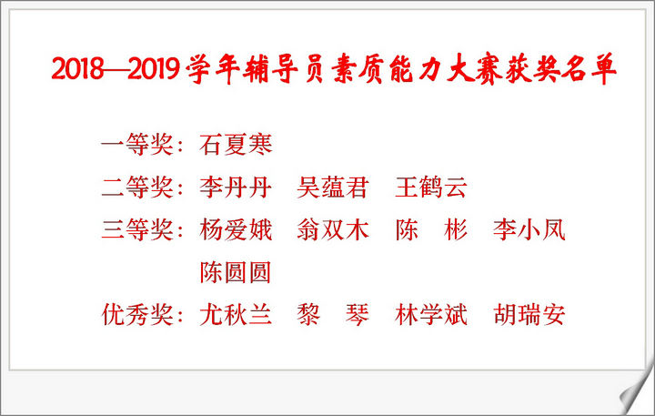 经过初赛选拔,全校共有13位选手进入决赛。决赛包括谈心谈话和理论宣讲两个环节。谈心谈话主要考察辅导员对相关理论政策、学生成长成才规律的了解把握,以及对实际问题的解决能力、对学生的教育引导能力。理论宣讲则注重考察辅导员理论宣讲的政治性、思想性、理论性、政策性、导向性。经过3个多小时的激烈角逐,最终评选出一等奖1名、二等奖3名、三等奖5名、优秀奖4名。