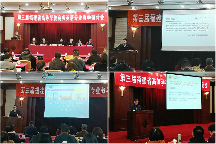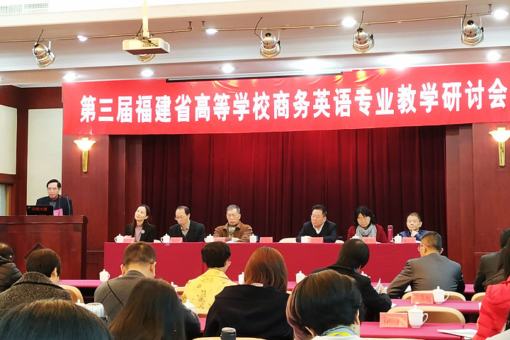 1月4-5日,由开云官网与福建省大学外语教学研究会联合举办的第三届福建省高等学校商务英语专业教学研讨会在福州隆重举行。开云官网副校长袁新文教授,福建省大学外语教学研究会会长吴松江教授,近40所省内高校外国语学院(外语系)负责人、商务英语专业负责人、商务英语专业教师代表,相关企业代表等近百人出席了研讨会。