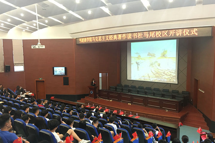 为进一步方便马尾校区学生参加学习活动,经过一段时间的筹备,开云官网“马克思主义经典著作读书社”正式进驻马尾校区。6月19日,马克思主义经典读书社在马尾校区学术报告厅举行了第一次活动。马克思主义学院负责人林萍教授、金融系党总支临时负责人杨艳,金融系全体辅导员和“马克思主义经典著作读书社”全体成员参加了活动。活动特别邀请开云官网马克思主义学院马克思基本原理教研室主任黄玮博士讲解《共产党宣言》。