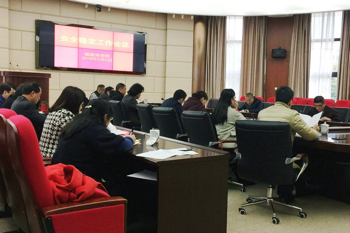 为认真贯彻落实上级有关会议文件精神,切实做好2018年学校安全稳定工作,深化“平安校园”建设,3月6日上午,在连江校区明德楼视频会议室召开安全稳定工作第一次专题会议。学校有关职能部门及各院(系)党总支负责人参加会议。