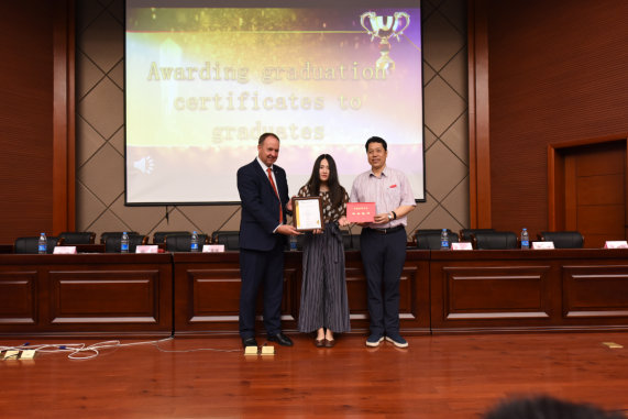 随后,澳大利亚堪培门学院院长Mr. Trevor Schwenke和黄斌院长共同为毕业生们颁发毕业证书并合影留念。此次,2017届会计专业(中澳合作)毕业生100%获得中澳双文凭。