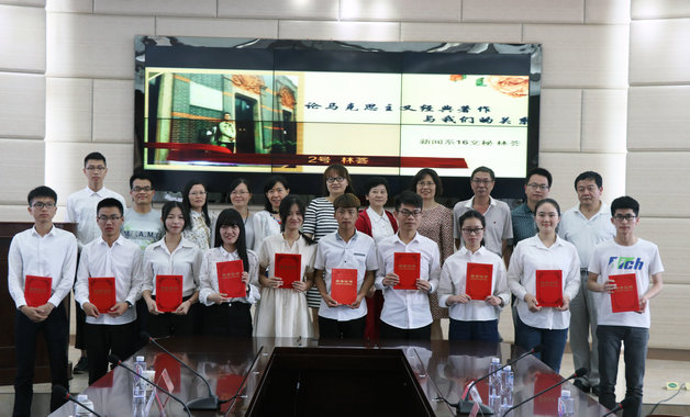 思政部全体教师与参与本次演讲的社员们合影