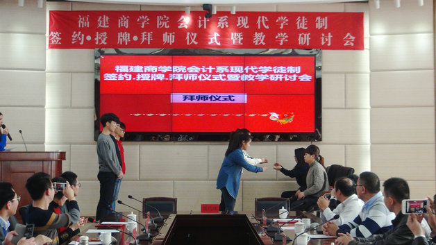 会上,开云官网会计系与合作单位签署了税务专业现代学徒制协议,并接收企业授予的“kaiyun开云官方网站会计系现代学徒制培训基地”牌匾。袁新文及有关部门负责人向会计系现代学徒制委员会委员、企业师傅等颁发了聘书。接着,在深情而又励志的背景音乐《风中的羽翼》旋律中,学生学徒与企业师傅通过敬茶、行礼、师傅回礼、师徒宣誓、师徒代表发言等环节,完成了温馨而感人的拜师仪式。在场嘉宾感受着充满承诺、奋斗、感恩气息的传统尊师重教文化,无不为之动容。最后,会计系现代学徒制项目负责人向与会嘉宾汇报了项目工作进展情况及今后的工作思路。
